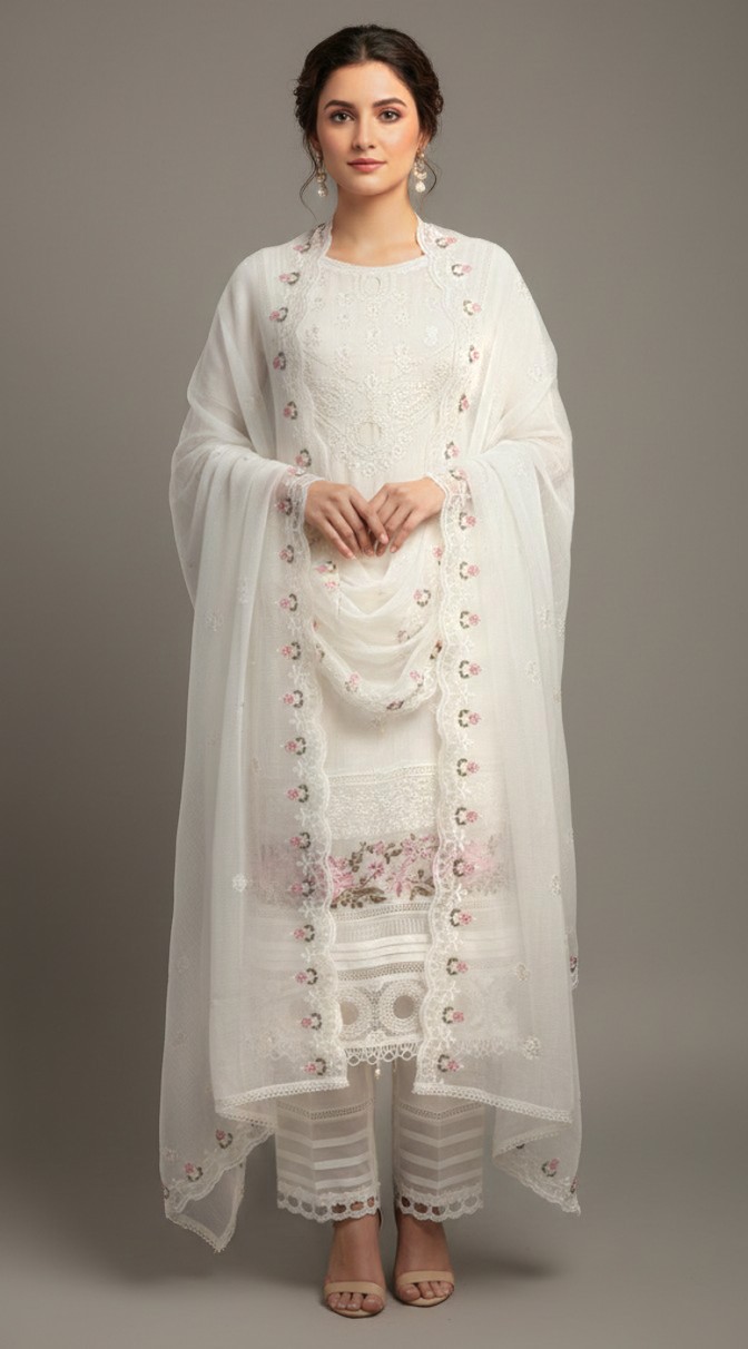 Dupatta : Soft chanderi &embroidery work cut work dupatta