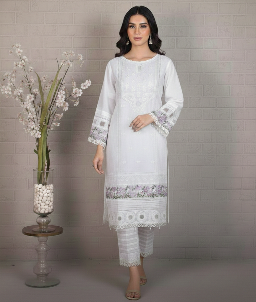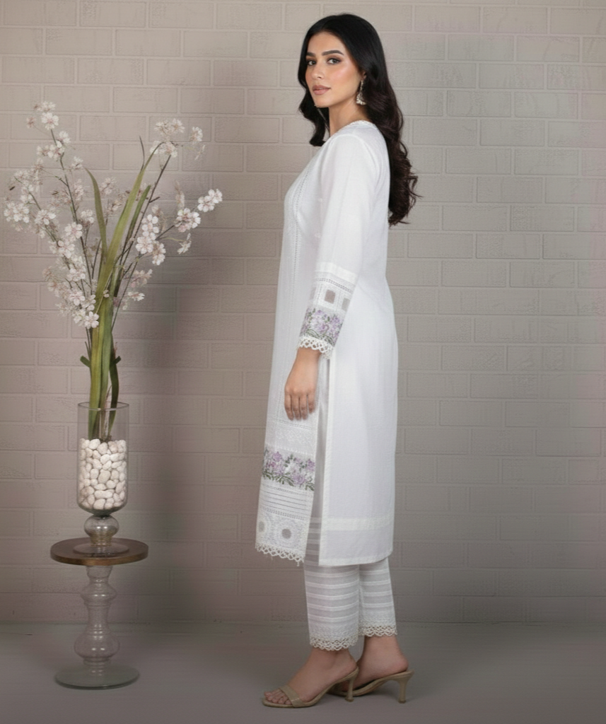 Top : Silk chanderi fabric with embroidery work and cutwork sleeves with embroidery work