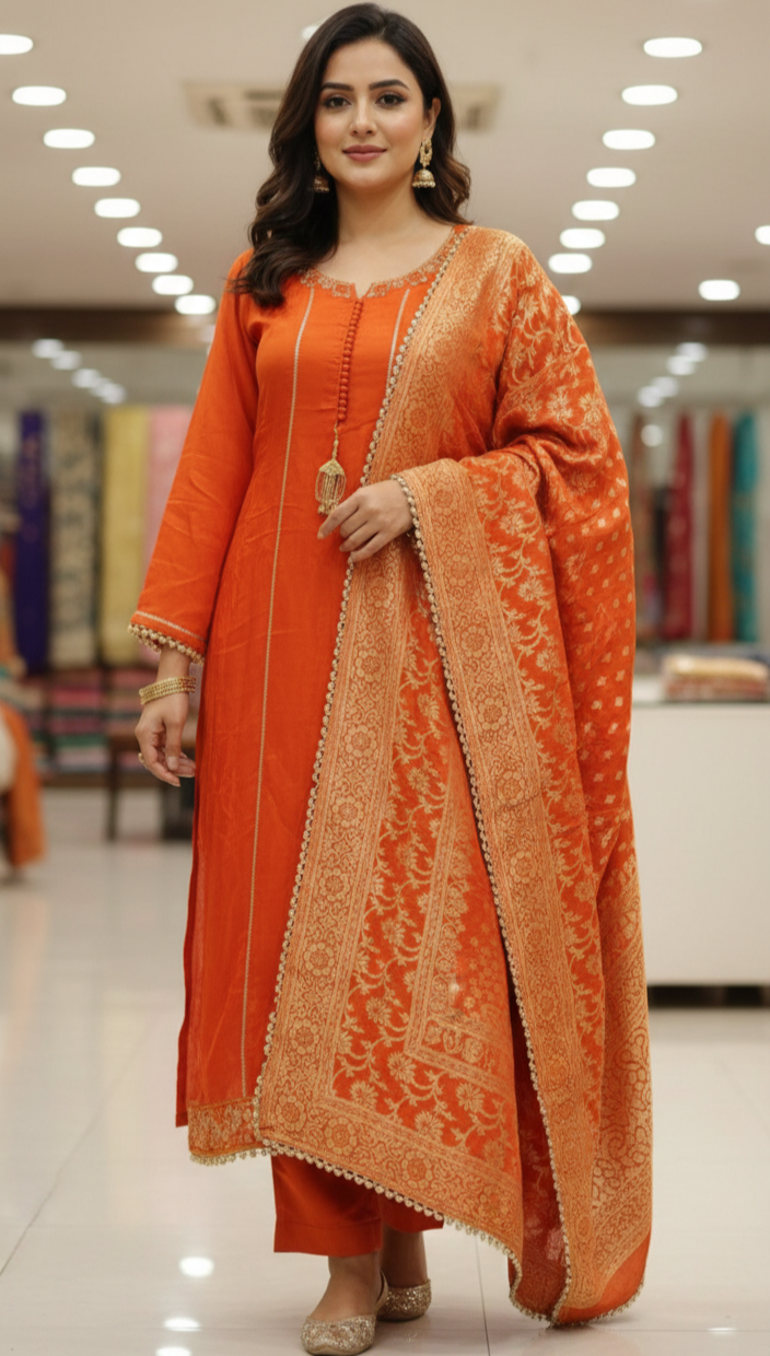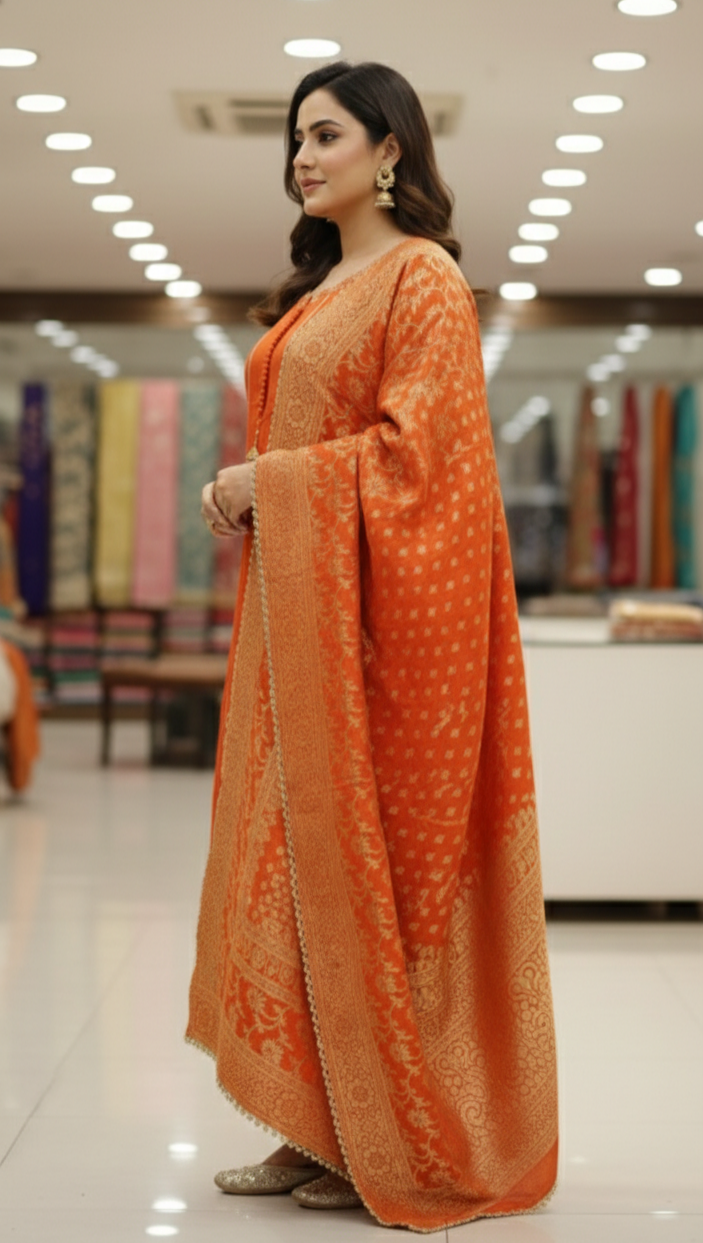 Top : Organza fabric  with embroidery and dupka handwork,sleeves with less
