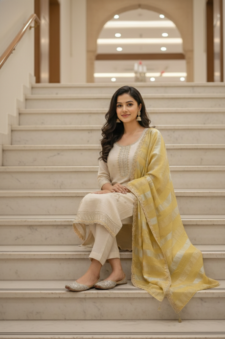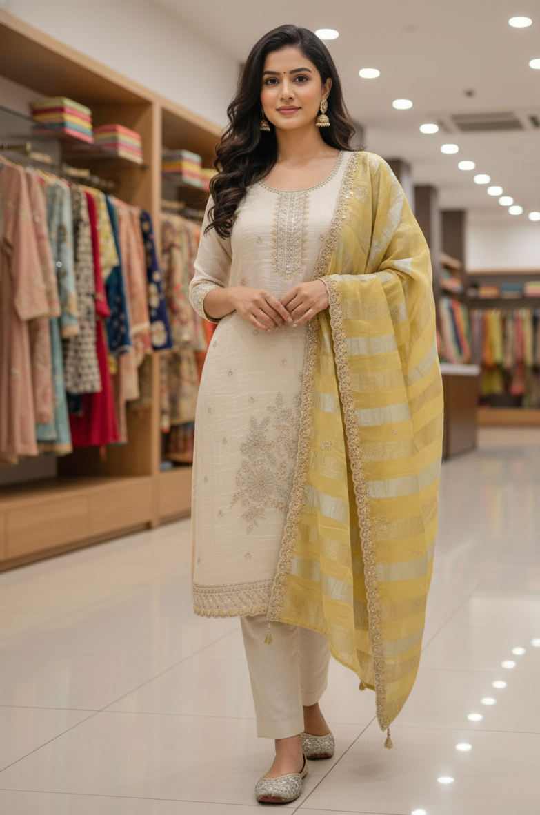 Be the first to review “Shimmer fabric embroidery and handwork with contrast suit”