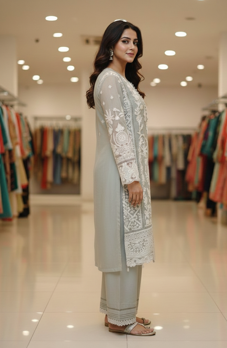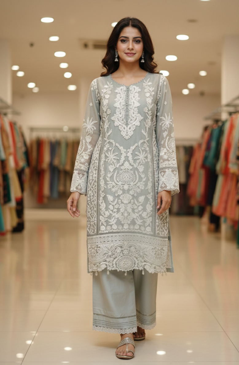 Dupatta: Soft shimmer embroidery work